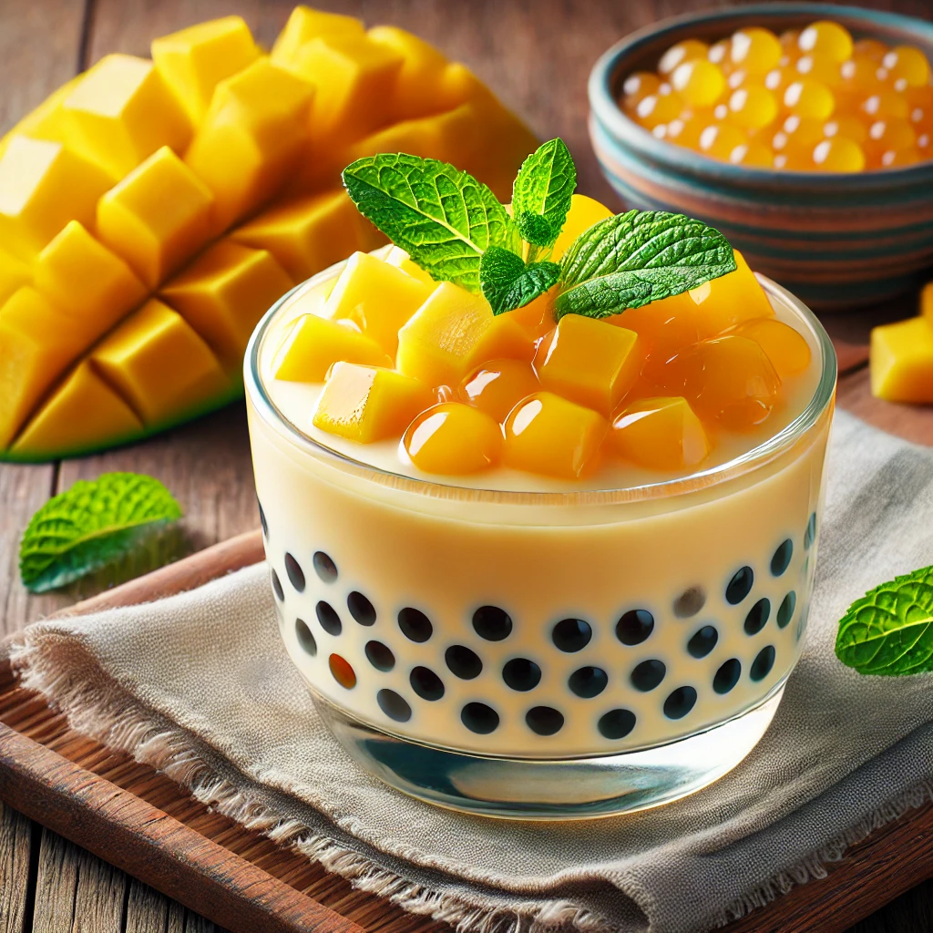 망고 타피오카 푸딩은 타피오카 펄과 망고 퓨레가 어우러진 디저트입니다. 타피오카 펄을 삶아 설탕물에 담가두고, 망고 퓨레와 섞어 냉장고에서 차갑게 식힙니다. 타피오카 푸딩은 쫄깃한 식감과 상큼한 망고의 조화가 일품입니다.