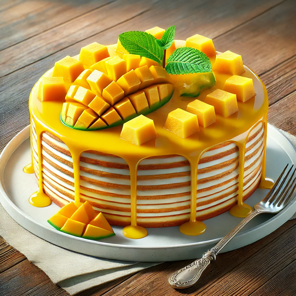 망고 크레이프 케이크는 여러 겹의 크레이프와 망고 크림이 어우러져 부드럽고 달콤한 맛을 자랑합니다. 크레이프 반죽을 얇게 구워 여러 겹으로 쌓아 올리고, 각 층마다 망고 크림을 바릅니다. 마지막으로 망고 슬라이스를 얹어주면 화려한 크레이프 케이크가 완성됩니다. 크레이프 케이크는 모양도 아름다워 특별한 날에 잘 어울리는 디저트입니다.