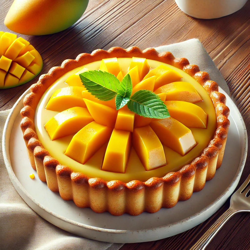 망고 타르트는 바삭한 타르트지와 부드러운 크림, 신선한 망고가 어우러진 디저트입니다. 타르트지는 밀가루, 버터, 설탕을 섞어 반죽한 후 오븐에서 구워 만듭니다. 타르트지 위에는 커스터드 크림을 채우고, 그 위에 신선한 망고 슬라이스를 예쁘게 배열합니다. 망고 타르트는 비주얼도 아름답고 맛도 훌륭한 디저트입니다.
