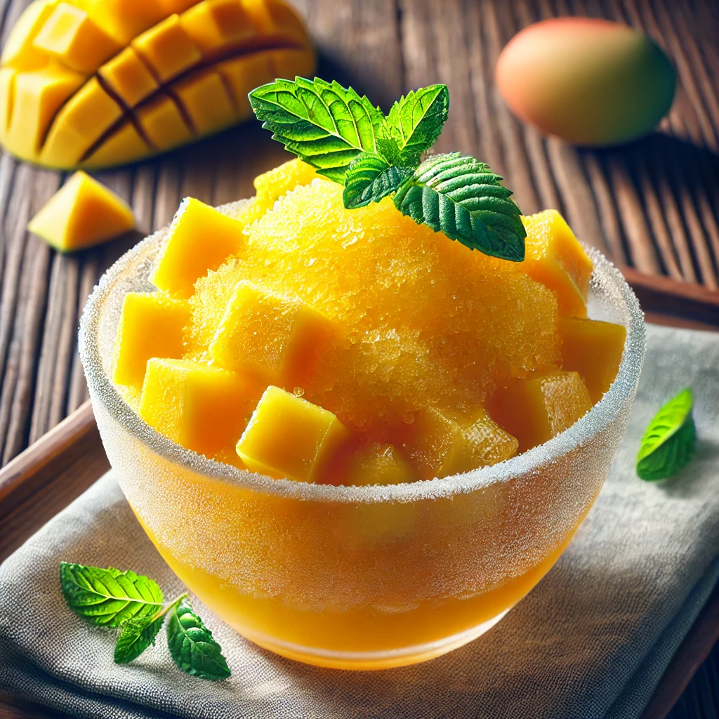 망고 그라니타는 시원하고 상큼한 디저트입니다. 망고 퓨레와 설탕물을 섞어 얼린 후 포크로 긁어 부드러운 얼음 가루를 만듭니다. 그라니타는 여름철 더운 날씨에 시원하게 즐길 수 있는 최고의 디저트입니다.