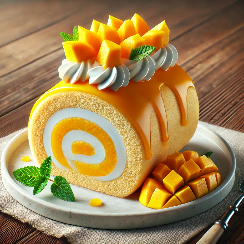 망고 롤 케이크는 부드러운 롤 케이크 속에 망고 크림이 듬뿍 들어간 디저트입니다. 스펀지 케이크 반죽을 얇게 펴서 구운 후, 망고 크림을 발라 돌돌 말아줍니다. 냉장고에서 차갑게 식힌 후 썰어주면 망고 롤 케이크가 완성됩니다. 롤 케이크는 만들기도 쉽고, 맛도 훌륭하여 많은 사람들에게 사랑받는 디저트입니다.