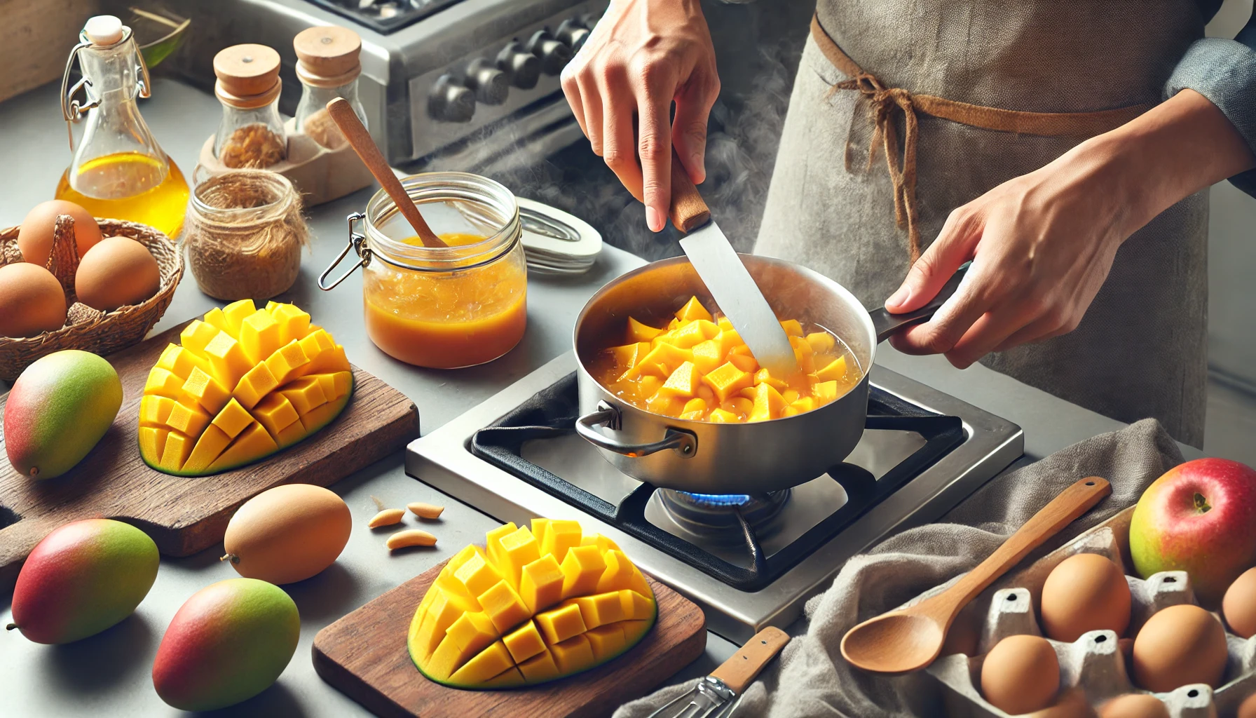- 방법: 믹서기에 망고와 코코넛 밀크를 넣고 곱게 갈아줍니다. 라임 주스와 설탕, 소금을 추가하여 다시 한번 갈아줍니다. 중불에서 약 10분간 끓여 농도를 맞춥니다.