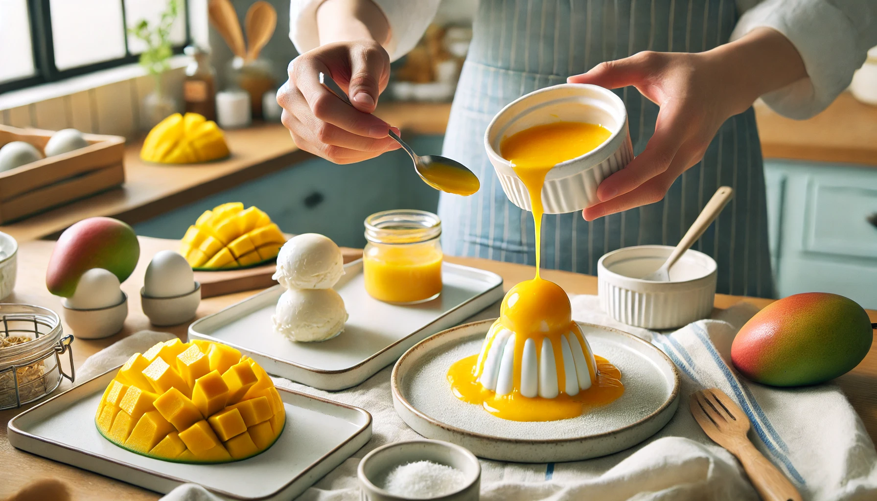 - 망고 아이스크림: 바닐라 아이스크림 위에 망고 소스를 뿌려 먹으면 시원하고 달콤한 디저트가 완성됩니다. 망고 소스는 아이스크림의 부드러운 맛과 잘 어울려 특별한 디저트를 만들어줍니다.