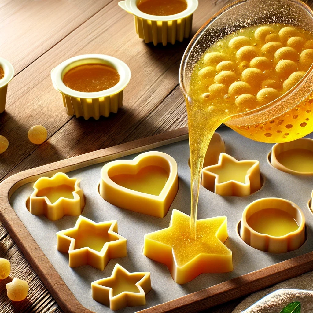 젤리 베이스가 준비되면, 준비한 젤리 틀에 젤리 베이스를 부어줍니다. 이때, 민트 잎을 함께 넣어주면 더욱 상큼한 맛과 향을 더할 수 있습니다. 젤리 틀에 베이스를 부은 후, 냉장고에서 굳힙니다.